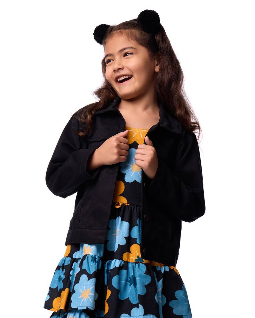 Descrição: Jaqueta infantil em sarja de algodão macia, com toque agradável e estrutura leve que acompanha o corpo com conforto. O design traz recortes frontais que valorizam a peça, além de lapelas que adicionam um charme utilitário e atemporal. O abotoamento frontal facilita o vestir, enquanto a pala nas costas com etiqueta aplicada reforça o cuidado nos detalhes e a identidade da marca. Versátil e funcional, é uma peça pensada para compor sobreposições com estilo, transitando com facilidade entre diferentes combinações.