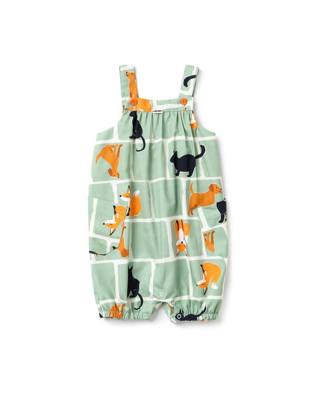Descrição: Macacão com modelagem soltinha que proporciona conforto e liberdade de movimento, perfeito para acompanhar a rotina das pequenas com leveza. Possui bolsos amplos e divertidos que adicionam um toque lúdico à peça, além de elástico suave na barra que garante melhor ajuste ao corpo. O decote quadrado com leve franzido traz delicadeza ao visual, enquanto as alcinhas ajustáveis por botões permitem adaptar o caimento conforme o crescimento. A abertura inferior com fechamento por botões de pressão facilita a troca de fraldas no dia a dia. O grande destaque fica por conta da estampa encantadora, que mistura gatinhos pretos e cachorrinhos caramelos em uma composição alegre, afetiva e cheia de personalidade.