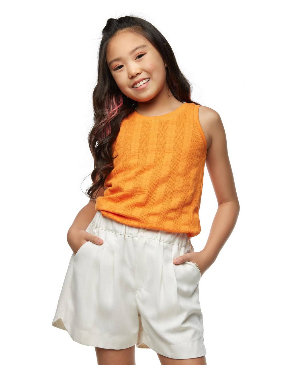 Descrição: Shorts lindo feito em tecido de algodão sustentável. Com pregas em estilo alfaiataria e zíper frontal, possuem bolsos faca nas laterais e cintura ajustável por elástico. Perfeitos para meninas que amam um look arrumadinho. Disponíveis nas cores preto, off white e laranja. Combine com nossas regatas ou peças do armário e arrase na produção.