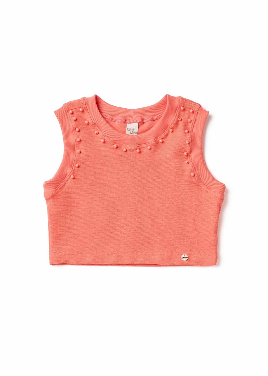 Descrição: Top cropped em malha texturizada de alta qualidade, com toque macio e excelente acabamento. Possui punho nas cavas e no decote, garantindo estrutura e conforto ao vestir. O destaque fica por conta do delicado bordado com pedrarias aplicado ao redor das cavas e do decote, que traz brilho sutil e charme artesanal à peça.