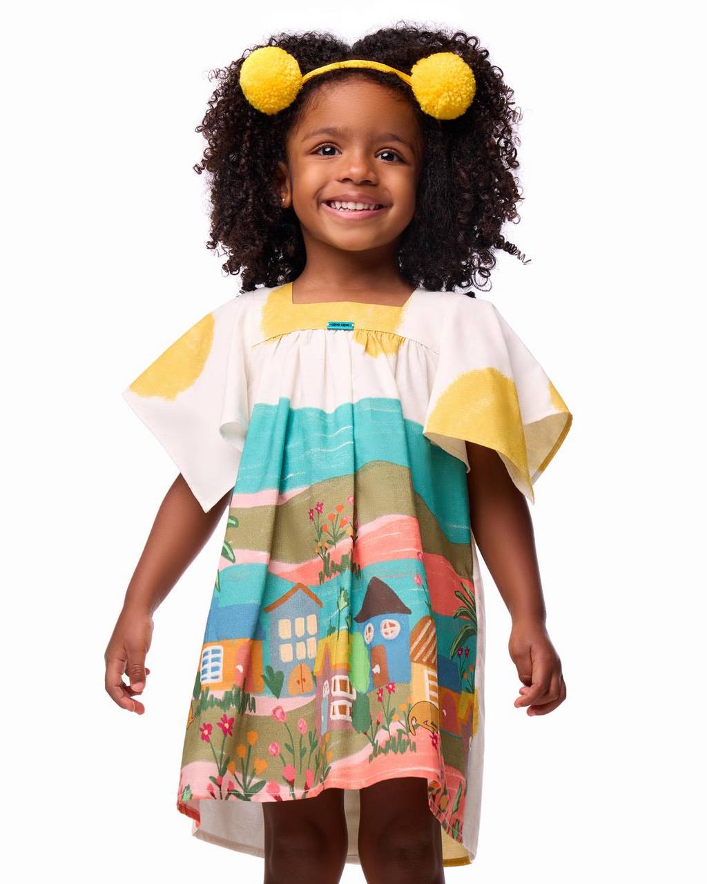 Descrição: O vestidinho bebê Vila dos Caramelos é confeccionado em tecido altamente respirável de 100% algodão, ideal para acompanhar os primeiros movimentos com conforto e leveza. A modelagem soltinha garante liberdade ao vestir, enquanto o decote quadrado traz um visual delicado. As mangas irregulares acrescentam charme e movimento à peça, e o abotoamento posterior facilita o vestir no dia a dia. A estampa Vila dos Caramelos transforma a roupa em história. Com traços que parecem desenhados à mão, ela retrata uma pequena vila cheia de cores, casinhas e caminhos, onde o cachorrinho caramelo aparece como personagem afetuoso, despertando curiosidade e identificação desde cedo. Uma narrativa visual que carrega alegria simples e o imaginário da infância brasileira. Uma peça confortável, atemporal e cheia de afeto, pensada com cuidado para a fase mais delicada da infância.